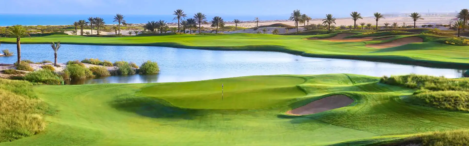 Saadiyat Beach Golf Club opened the first beachfront golf course in Abu Dhabi. Get treated to stunning views throughout the course; from the dolphins swimming in the Arabian Gulf, nearby hawksbill turtles, to mountain gazelles taking strolls along the 7,137 meters course.