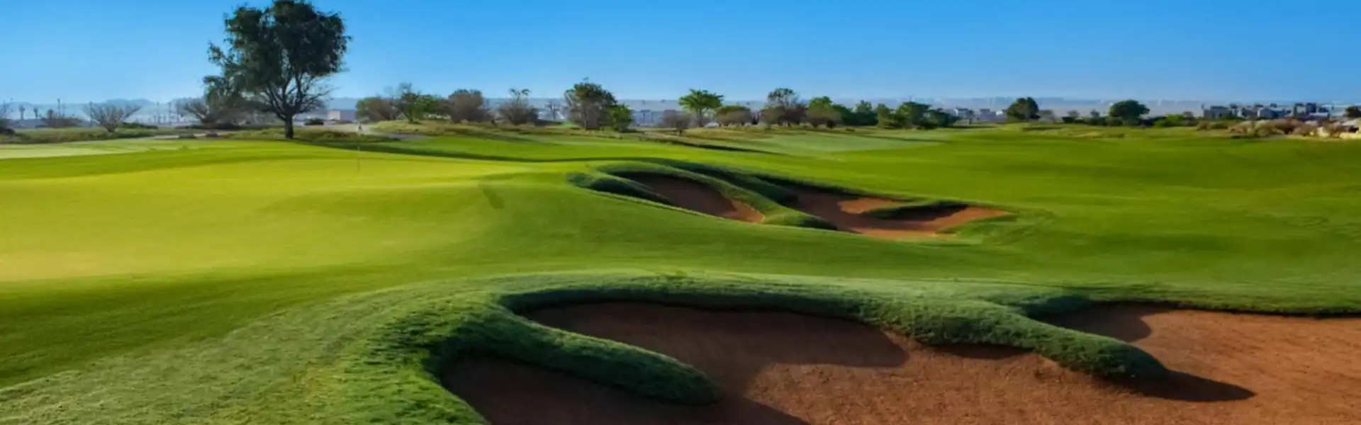 The 18-hole links-style Fire Course at Jumeirah Golf Estates blends beautifully into the natural desert landscape. This course is a fantastic golf holiday for golfers of all levels.
