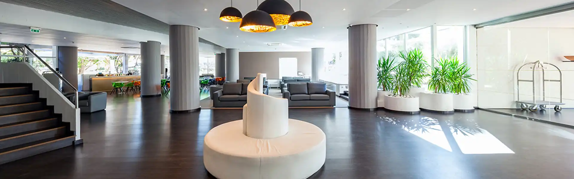 Five minutes away from the Vilamoura Marina, this upscale hotel is right opposite the Vilamoura Casino and 150 meters away from the beach – a prime location, especially by golfers, as it is in the heart of a wide variety of golf courses to enjoy unforgettable moments. Also, the free shuttle service to the golf courses in Vilamoura will please the golfers.